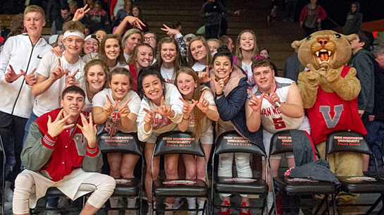 Van Wert fans (above) were out in force for the Cougars’ thrilling overtime win over Defiance in a Division II district semifinal game played Wednesday at Ohio Northern University. Game story and photo on Sports Page. Bob Barnes/Van Wert independent