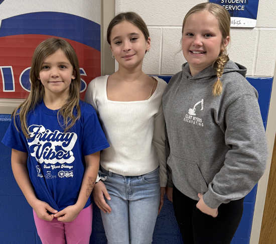Third grade: Cooper Agner, Lydia Ballard, Amelia Brown, Elliana Cox, Ryleigh Dickens, Selah Geise, Cooper Harmon, Claire Hirschy, Paislee Kreischer, Colt Lichtensteiger, Harper McCoy, Adley Miller, Owen Motycka, Kennedy Orsbon, Etta Schaffner, Rigby Straw.