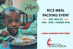 First United Methodist Church is issuing a critical call to action for the Van Wert area and surrounding communities, families and local businesses to help pack life-saving rice meals for the people of Haiti. This event will be held from 9 a.m. to 12 p.m. Saturday, November 22, at the Goedde Building Gym, located on W. Crawford St., Van Wert.