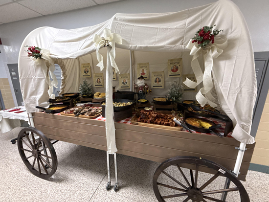 The Van Wert City Schools Board of Education held its monthly meeting at the school and the students presented a chuckwagon spread that was second to none, plus a replica chuckwagon.