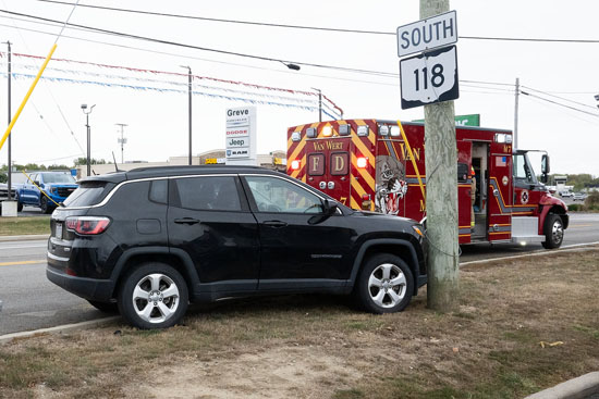 This single vehicle accident occurred shortly before 11 a.m. at Shannon and Ervin Road sent the driver to OhioHealth Van Wert Hospital. A witness said it appeared the driver went unconscious and the vehicle went forward at a low speed and struck a utility pole. Van Wert EMS personnel removed the driver and transported the person to the hospital. Very little damage was visible to the vehicle. Bob Barnes/VWFD photographer