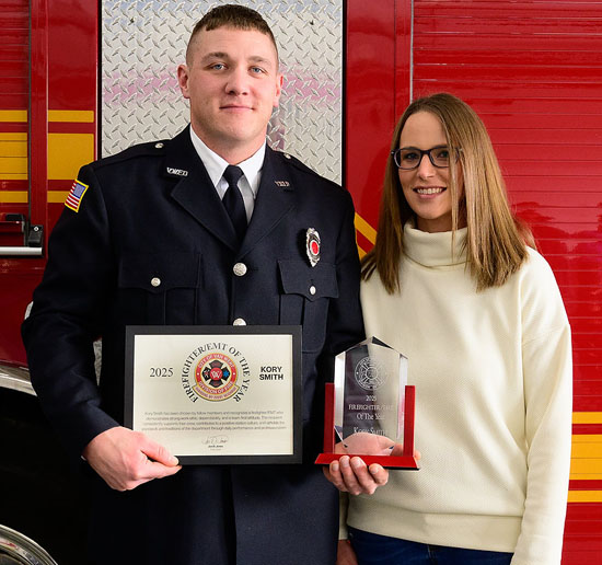 - Firefighter Trevor Spridgeon was recognized for reaching five years of service.