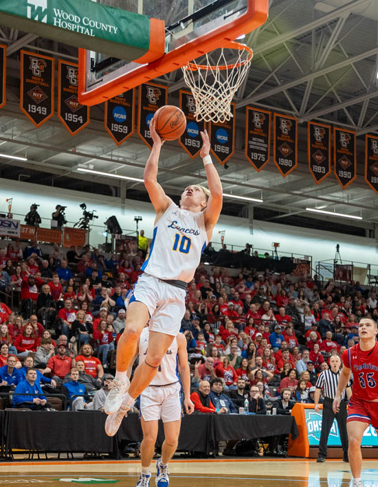 Elida’s Jonathan Payne (0) finds himself surrounded by four Van Wert defenders during Friday’s night’s game against the Cougars. After spotting the Bulldogs a first half lead, Van Wert clamped down defensively and cruised to a 61-36 win. A full game story can be found on the Sports page. Bob Barnes/VW independent