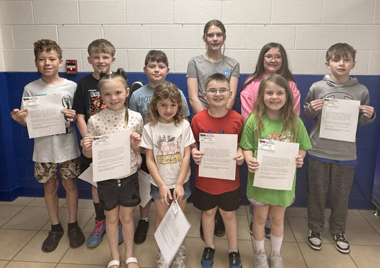 Crestview Elementary recently named its Students of the Month sponsored by Van Wert Cinemas. Students making the Knight Leader Board each month are put into a drawing for a free 30-day pass to the movie theater for their entire family. Van Wert Cinemas March Students of the Month are Opal Grand and Kimber Poling (first grade), Asher Kuhn and Jordanne Short (second grade), Masyn Runyon and Luke Brown (third grade), Ethan Sinn and Barrett Maxwell (fourth grade), and Georgia Smazenko and Addilyn Gilbert (fifth grade). Photo submitted