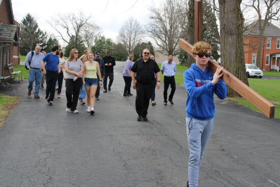 There were two Procession of the Cross events in Van Wert on Good Friday. One took place late in the morning, shortly before a 12 p.m. community service Good Friday service that was held in the Bagley Auditorium at the Marsh Foundation. The other one took place Friday evening and went from the YWCA to the First United Methodist Church, followed by a service there. Scott Truxell/Van Wert independent