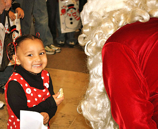 More than 170 children and their parents enjoyed games, snacks, cookie decorating, and a visit with Santa during the annual Central Mutual Children’s Christmas Party this past Saturday. Shown is Meah Johnson talking to Santa. (Central photo)