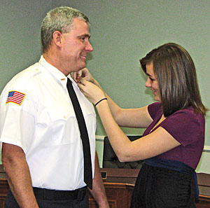 Lahmon swearing-in 1-3-11-Pinning on new badge