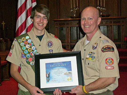 Boy Scout Troop 35 recently honored Ben Price, 18, of Van Wert, during an Eagle Scout Court of Honor on Sunday, December 19, at First Presbyterian Church. Price is the son of John and Kari Price of Denver, Colo., and Diane and Pat Ryan of Van Wert.