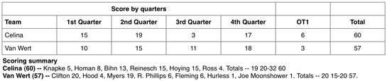 Celina then converted on free throw attempts in overtime to take the win.