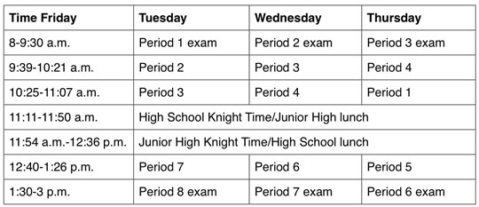For more information on the exam schedule, call the high school office at 419.749.9100.