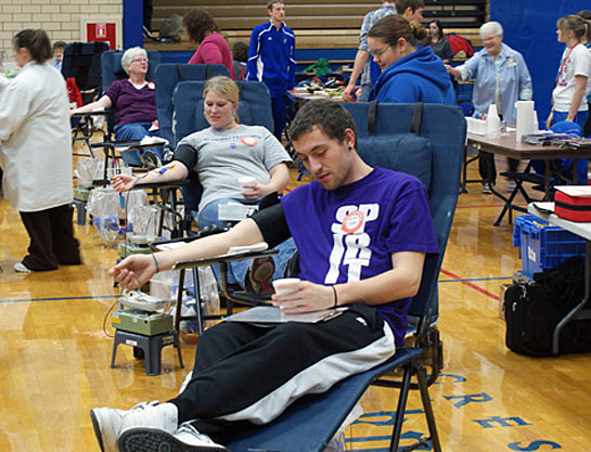 The 12th annual American Red Cross Blood Drive held at Crestview was again extremely successful. According to the Red Cross, the event, under the direction of Keith Langdon and the Crestview High School National Honor Society, set a new Crestview record with 126 units of blood. This amount was 11 units over the goal of the drive, which was 115 units. Because of the success of the drive, the Red Cross is now donating a $500 scholarship to a Crestview senior. The NHS and American Red Cross would like to thank all of the students, staff, and community members who donated their time and gave the gift of life. Over the event’s 12 years of existence, the Crestview community has donated 1,240 unit of blood, potentially saving thousands of lives. Shown are Crestview students Drew Strawser and Kelsie Preston donating blood at the 12th annual Red Cross Blood Drive held at Crestview. (Crestview photo)