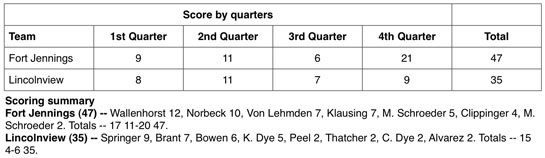 Free throws were part of the difference, as Fort Jennings hit 11 of them, compared to just four for the Lancers. Lincolnview had a better free-throw percentage, though, hitting 4 of 6 for 66.7 percent, compared to 11 of 20 for the Musketeers (55 percent).