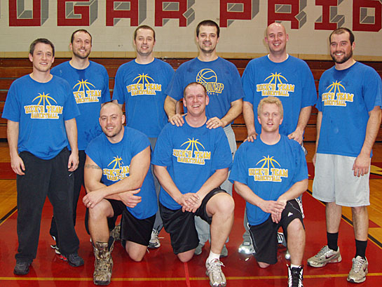 All seven teams that participated in league play competed in the tournament. In the first round of games Team Jordon defeated Team Bob Knight, 72-67, in triple overtime. Vorst Paving advanced by eliminating Hatfield’s, 58-48, while Don’s Custom Exhaust was then pounded by Leland Smith Insurance, 111-45.
