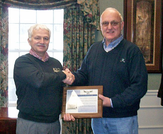 Van Wert County Historical Society Trustee Larry Webb presented the 2011 Isaac Van Wart Award of Appreciation to Gary Clay, president/CEO of the Van Wert Federal Savings Bank for the bank's consistant support of the society. (Historical Society photo)
