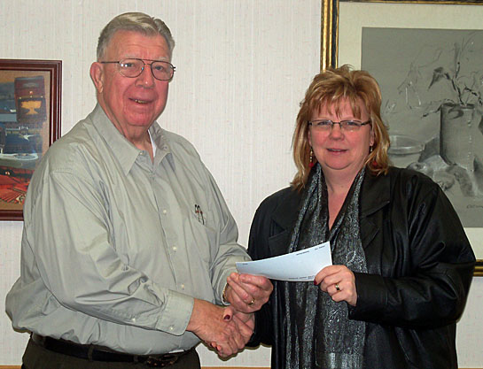Van Wert County Foundation Executive Secretary Larry Wendel presents a $500 check to Cheri Oechsle, Van Wert Youth Football Association secretary, from the Foundation’s Bair Fund. Van Wert Youth Football is a non-profit organization made up of volunteers that work with area youth grades 3-6 teaching the fundamentals of tackle football and cheerleading. (VWCF photo)