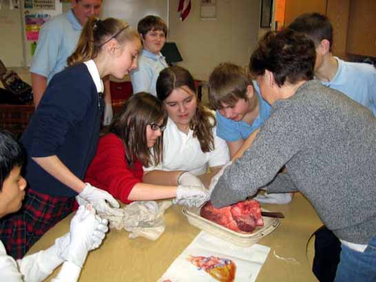 heart attack. Kathy Schaadt, RN and volunteer, helped the class dissect