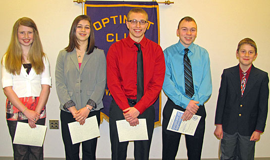 Jordan Mohr won first place in the competition for boys and Ann Brake won first place in the competition for girls. Both received gold medallions and checks for $150. In addition, the first-place finishers will participate in the zone event to be held in Delphos in April, where they will compete against winners from other Optimist Clubs.