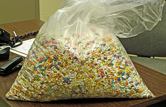 Van Wert County Sheriff Stan D. Owens has advised that, during the first two weeks of the Drug Enforcement Agency (DEA) Prescription Drug Initiative, 50½ pounds of prescription drugs (shown above) have been turned over to the sheriff’s department for disposal. The program runs until April 30. Prescription drugs can be dropped off at the Van Wert County Sheriff’s Department, 113 N. Market St. in Van Wert. (Sheriff’s Dept. photo)