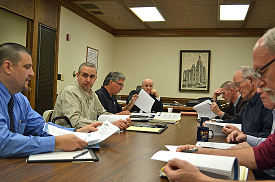 The commissioners, Judge Steele, Bruce Miller and Christopher Monnin of Minster-based Garmann/Miller Architects-Engineers and Chris Johnson, project administrator for Energy Optimizers USA, also attended the meeting to provide their input on the project.