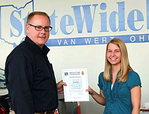 Emily Fast and Abby Evans have been awarded $1,000 scholarships by StateWide Ford Lincoln and Ford Motor Company. Fast, a 2011 graduate of Van Wert High School, is the daughter of Mark and Lori Fast of Van Wert and plans to study agricultural business management at The Ohio State University. Evans, a 2011 graduate of Parkway High School, is the daughter of Richard and Karen Evans of Ohio City and plans to study agronomy and crop science at The Ohio State Agricultural Technical Institute.