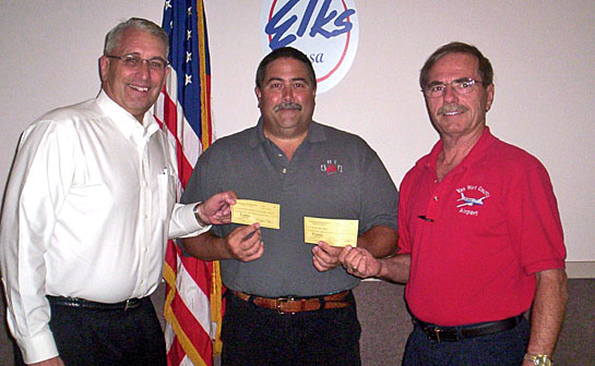 Van Wert Lodge 1197, Benevolent and Protective Order of Elks, recently donated funds raised from this year’s Wheels ‘N’ Wings Festival held in May to the Van Wert Area Convention and Visitors Bureau and Van Wert County Airport. The Elks lodge was approached by the CVB to operate a beer tent during the festival and the proceeds were to be split three ways. Instead of the lodge keeping any of the proceeds, it split its share of the profit and donated it to both the CVB and airport. Shown at a check presentation ceremony are (from the left) CVB Board President Dave Roach, Elks Wheels ‘N’ Wings Chair Troy Miller, and Airport Manager Tom Dunno. (Elks photo)
