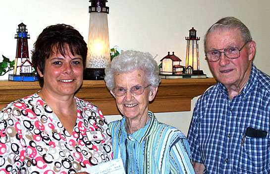 Paul and Alice Shank of Middle Point presented a $1,000 donation to Community Health Professionals’ Van Wert Area Inpatient Hospice Center building fund. The couple is shown presenting a check to Tonya Schumm, RN. Located on Westwood Drive, the hospice facility provides care and support to families and patients facing a terminal illness. More information about the hospice center can be found at www.comhealthpro.org or by calling 419.623.7125. (CHP photo)