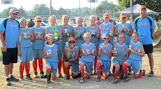 The Van Wert Pride 12-under Girls fast-pitch club softball team was the champion of the New Haven fifth annual Luau Fast-pitch Softball Tournament held July 15-17 at New Haven, Ind. The team defeated Monroe, Ind., 10-9 in the championship game! Team members include: Cora Millay, Meredith Adams, Meghan Moonshower, Megan Spray, Makenzie Sipe, Abbi Spridgeon, Coach Sean Kennedy, Alli Kennedy, Olivia Profit, Jada Preston, Sierra Blackmore, Alyx Slusher, Kateri Steinecker, Hayley Klausing, Haley Hawk and Coach Greg Steinecker (missing: Coach Jeff Millay). Team members thank their sponsors: Northwest Ohio Screenprinting Welch Trophy, Kerns Chevrolet Buick GMC Inc., Citizens National Bank and Unverferth Manufacturing Company Inc. (photo submitted)