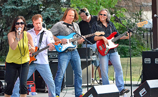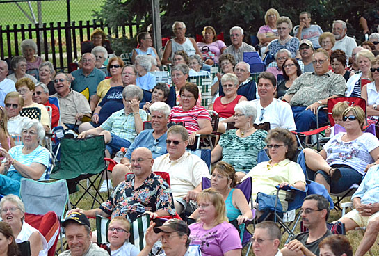 Gary Jenkins (above, second from left) and his Thundering Hearts band entertained a large crowd (below) Friday in Fountain Park. The concert is the next to the last for The Van Wert County Foundation’s 2011 Summer Music Series, with the final concert of the summer featuring Gary Puckett & the Union Gap scheduled for Friday, August 12. Following that concert will be a showing of the classic movie The Wizard of Oz on a large portable screen in Fountain Park. (Dave Mosier/Van Wert independent)