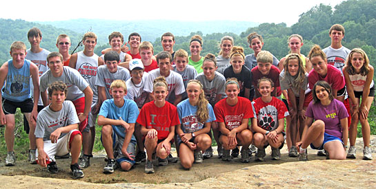 The Cougar harriers just returned from a weeklong training camp in the Hocking Hills. All 31 members of the boys’ and girls’ cross country teams, under the direction of third-year Head Coach Brendon Moody, spent the week, running, hiking, and working on team building exercises.