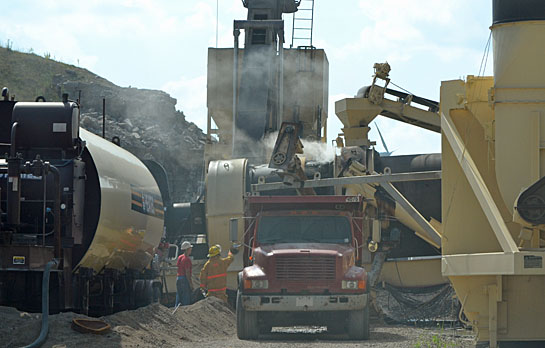 Four fire departments were called to the Stoneco quarry near Scott when a plant that manufactures asphalt ignited. Firefighters from Scott, Convoy, Grover Hill and Middle Point were on the scene after the fire was called in at approximately 4 p.m. Monday. (Dave Mosier/Van Wert independent)