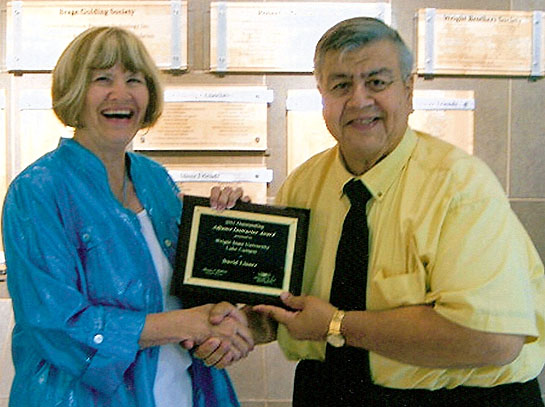 Former Van Wert High School Spanish teacher David Lianez (right) was recently named the “outstanding adjunct instructor” at Wright State University’s Lake Campus. Each year, the awards committee selects an outstanding adjunct who has contributed new and innovative ideas and methods to the core curriculum of the university, and that add to the depth and diversity of the university’s class offerings. Lianez is shown with Lake Campus Dean Bonnie Mathies. (WSU-LC photo)