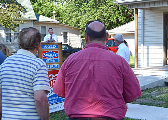 Straley Realty & Auctioneers staff (above) held auctions for two rehabbed houses on North Race Street and a new home in the Washington Place subdivision on Tuesday. It was not known this morning if bids on any of the three dwellings met or exceeded minimum bids set by Vantage Career Center. The North Race Street houses were projects of Vantage’s Buildings and Grounds program, while the Washington Place home was built by Vantage’s Carpentry program. (Dave Mosier/Van Wert independent)