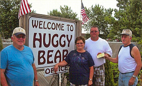 The Venedocia Lions Club recently made a donation toward the fireworks display at Huggy Bear Campground over the Fourth of July weekend. The Venedocia Lions Club operates its sausage trailer at the campground in October during the last weekend of the season. Shown are (from the left) Lion Jerry Freewalt, Huggy Bear owners Lori and Mike Niese, and Lion Vince Clement. (Venedocia Lions Club photo)