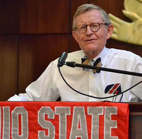 The OSU Extension event also included a visit by Ohio State President Gordon Gee, who brought his trademark bow-tie and ebullient humor to the community. Gee’s local stop was part of a six-county trip that included a tour of local agribusiness icon Universal Lettering, which maintains an eight-decades-long tradition of making the official jackets for the national FFA organization.