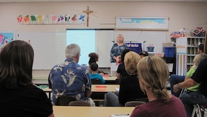 Beginning school can be stressful for many people - especially for those entering Kindergarten. To ease this transition for parents of Kindergarten students, Mrs. Tate, Kindergarten teacher at the St. Mary of the Assumption Catholic School, conducted an orientation session last week. She explained goals and curriculum for the year. Mrs. Replogle, K+ instructor, and Mrs. Dowdy, helped with this session.