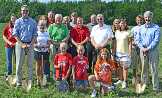 Members of the Van Wert County Tennis Association, school officials, tennis coaches and players gathered Friday afternoon at the site where a new six-court tennis complex will be built, beginning Monday, weather permitting. (Dave Mosier/Van Wert independent)