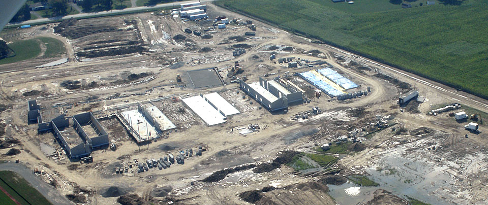 SCHOOL SITE — Local resident Jim Lahmon took this photo while flying with local attorney Chuck Koch over the construction site for Van Wert City Schools’ new grades 1-5 elementary building. The new school is expected to be completed by the start of school in 2012.