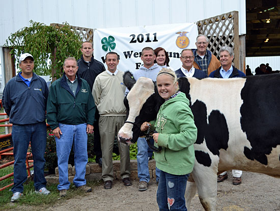 As usual, the sale of the symbolic gallon of milk began this year’s livestock auction. This year, a total of $2,725 was paid by a consortium that included US Bank, Nancy and Jerry Rismiller, the Farm Focus Committee, Eljer Farm/Rhoades Family, Junior Fair Booster Club, Dwight High, Kenn-Feld, Sugar Lane Dairy, Raabe Ford, Statewide Ford, Leland Smith, Wells Fargo Bank, The Vann Wert County Foundation, Van Wert County Hospital, Van Wert Federal Savings Bank, Ag Credit, Sycamore Ice Cream, Edward Jones/Tim Stoller, Gina Dairy, First Federal Savings & Loan Association, Wolfe Ridge Farm, Hempfling Dairy, D&D Ingredients, Kaverman, Gibby’s Photo Express, Hall Lumber, Bee Gee Realty and Farm Credit.