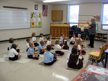 music teacher. Mrs. Slusher teaches music to all grades at St. Mary’s each