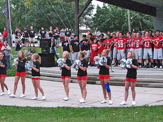 The annual Powder Puff football game pitting the girls of the junior and senior classes against each other, will follow the rally, beginning at 7:30 in Eggerss Stadium. The game will also feature “cheerleaders” and a male Homecoming “queen” and his court.