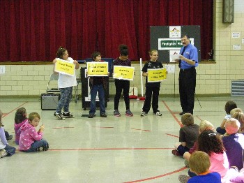 Firefighter Phil visited Franklin Elementary today to remind the students and staff of fire safety rules and what to do in case of a fire.