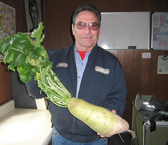 Local resident Tony Lippi came into the Van Wert independent offices with this gian white radish. The radish, grown in Lippi’s garden, measures 40 inches tip to tip and 15 inches in circumference. (VW independent photo)