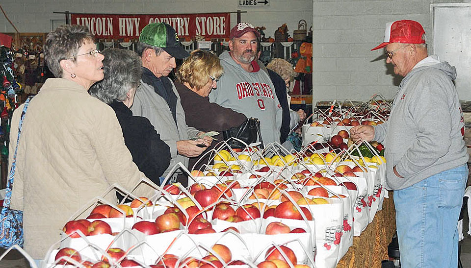 Apples were certainly the main attraction as the 2011 edition of the Apple Festival opened Friday at the Van Wert County Fairgrounds. Many apple-themed treats are available at the festival, which continues today from 9 a.m.-5 p.m., while lots of other food items and a number of arts and crafts items are being offered. (Jan Dunlap/Van Wert independent)