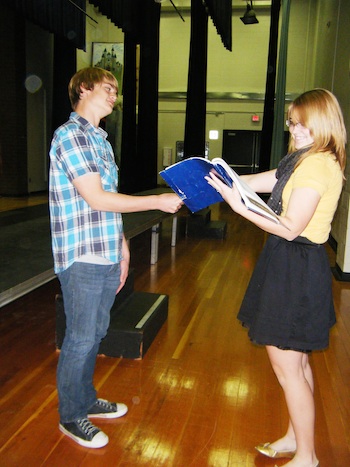 Oklahoma cast members Quintin Bouillon and Shelby Minnich rehearse their lines for the show that’s coming up in two weeks.