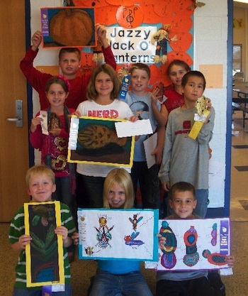 The Lincolnview Elementary students above won awards for their artwork at the Van Wert County Apple Festival held last week. From the left: (front row) Braydon Lintermoot, Brianna Ebel, Collin Overholt (back row) Madison Langdon, Ethan Kemler, Mackenzie Sealscott, Gage West, Rinoa Dull, Brok Bill.