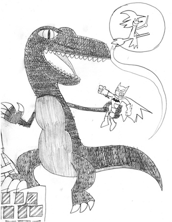 Speaking of scary, congratulations to Peyton Closson, Van Wert as the winning T-Rex drawing for a free any size/any kind pizza from Pizza Hut®! This is a wonderful rendition of Batman holding his own against this terrible prehistoric menace. Great use of imagination and graphic style, Peyton! Stay tuned for our next pizza challenge!
