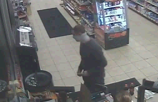 The incident occurred at approximately 10:07 p.m. Tuesday when a white male believed to be approximately 6 feet tall with a thin build entered the convenience store and demanded money from the cash register. The man’s face was partially covered by a thin piece of cloth.