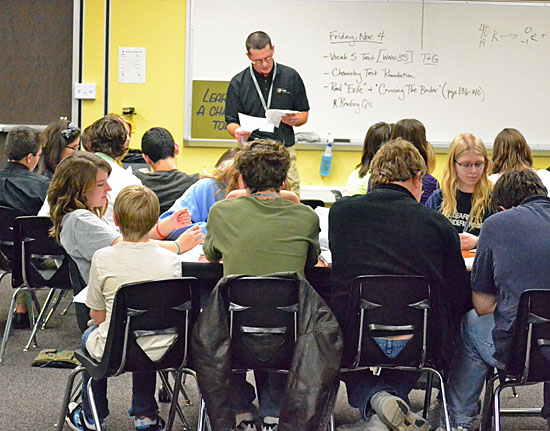 Teachers at Viking New Tech are more like facilitators than traditional teachers. The teachers provide the framework for each project, but then the students take over, researching what is needed to complete the project and coming up with how a project is to be accomplished.