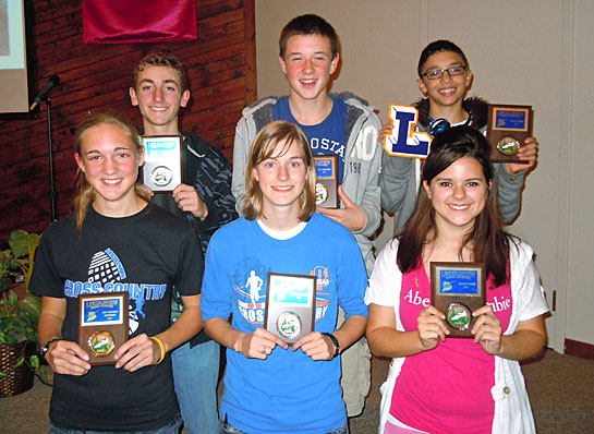 The Lincolnview High School cross country teams held their end of year awards. Receiving special awards were Bayley Tow and Kerri Grothaus, most valuable; Troy Thompson and Karissa Burns, most improved; and Alex Rodriguez and Madelyn Jones, coach’s award. (Lincolnview photo)