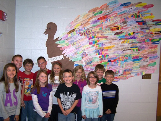 Each class submitted “feathers” that stated what they were thankful for during this very special time of gratitude. Student Council members then placed the feathers on the wall, creating a beautiful turkey image to help celebrate their Thanksgiving Feast.